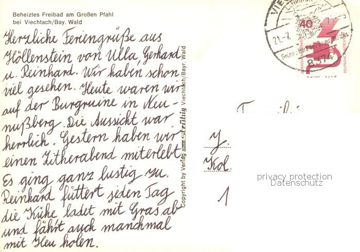 73754752 alte Postkarte Viechtach Bayerischer Wald Freibad am Grossen Pfahl Fliegeraufnahme postalisch gelaufen Erhaltung siehe scans [WerneD78] KatCode: 11110009276144