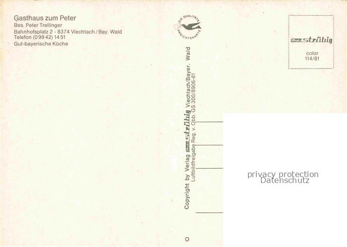 74156070 Viechtach Bayerischer Wald Gasthaus zum Peter Gastraum Ortsansicht Luftaufnahme postalisch nicht gelaufen Erhaltung siehe scans [FriedD77] KatCode: 11110009276144