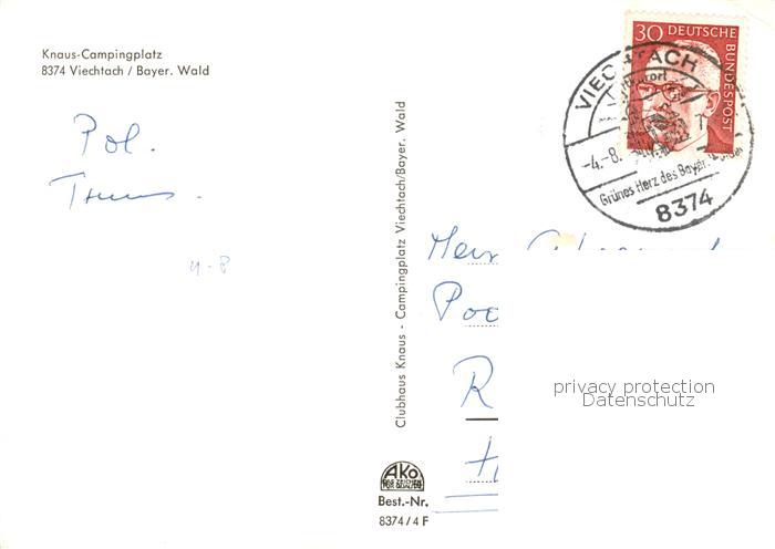 73857826 alte Postkarte Viechtach Bayerischer Wald Knaus Campingplatz Fliegeraufnahme postalisch gelaufen Erhaltung siehe scans [FriedD77] KatCode: 11110009276144
