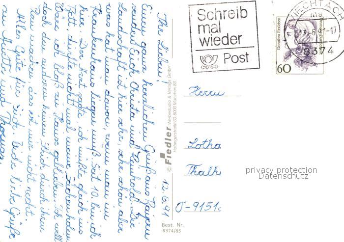 72971480 alte Postkarte Viechtach Bayerischer Wald Panorama Erholungsort Teich Campingplatz Kapelle postalisch gelaufen Erhaltung siehe scans [FriedD77] KatCode: 11110009276144