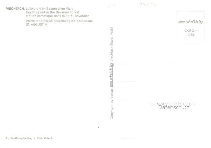 73647224 Viechtach Bayerischer Wald Pfarrkirche Luftkurort Fliegeraufnahme postalisch nicht gelaufen Erhaltung siehe scans [FriedD77] KatCode: 11110009276144