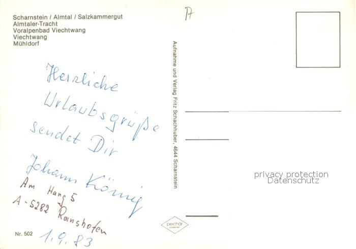 73668760 Viechtwang Scharnsteig Almtaler Tracht Voralpenbad Bildstock Muehldorf postalisch nicht gelaufen Erhaltung siehe scans [WerneD78] KatCode: 11390315040705