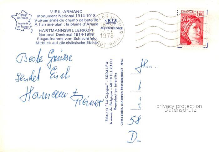 13054844 carte postale Vieil Armand Hartmannswillerkopf Monument National Vue aerienne du champ de bataille postalisch gelaufen Erhaltung siehe scans [WerneD78] KatCode: 1117006836812