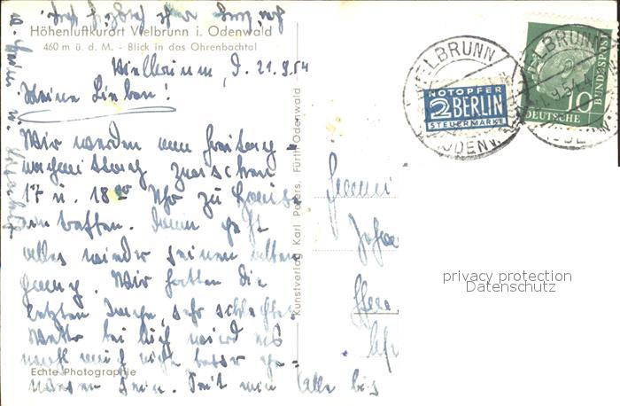 72097117 alte Postkarte Vielbrunn Blick ins Ohrenbachtal postalisch gelaufen KatCode: 11110006437011