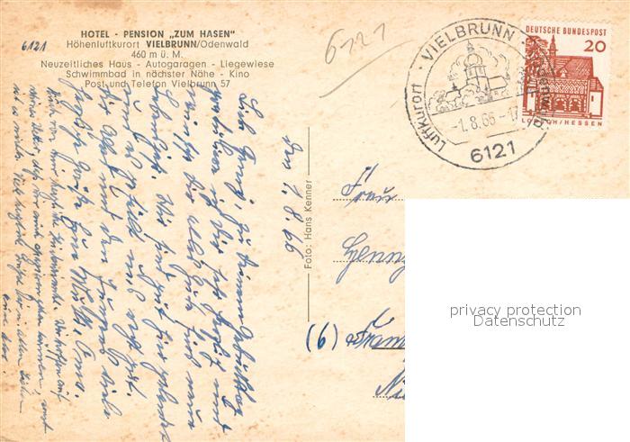 73711287 alte Postkarte Vielbrunn Hotel Pension Zum Hasen postalisch gelaufen Erhaltung siehe scans [WerneD78] KatCode: 11110006437011