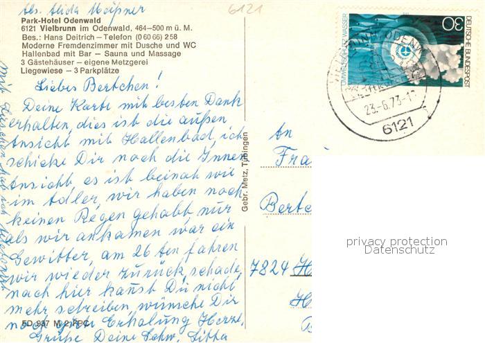 73031419 alte Postkarte Vielbrunn Parkhotel Odenwald postalisch gelaufen Erhaltung siehe scans [KathaD81] KatCode: 11110006437011