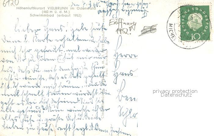73749322 alte Postkarte Vielbrunn Schwimmbad postalisch gelaufen Erhaltung siehe scans [WerneD78] KatCode: 11110006437011
