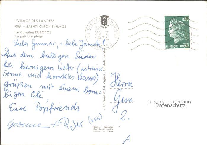 12040020 carte postale Vielle-Saint-Girons Camping Eurosol postalisch gelaufen Erhaltung siehe scans KatCode: 11170040140326