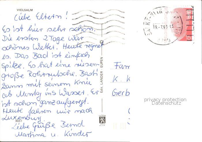 72062615 carte postale Vielsalm postalisch gelaufen Erhaltung siehe scans KatCode: 11070082001972