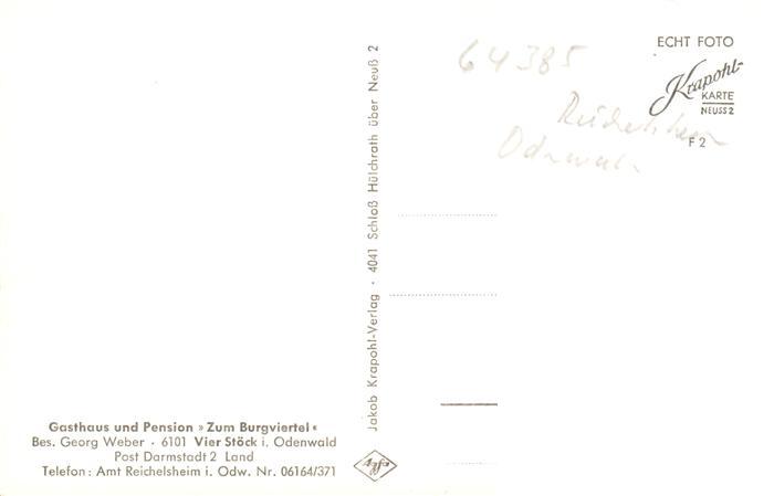 73915672 Vier Stoeck Odenwald Waldgaststaette Zum Burgviertel postalisch nicht gelaufen Erhaltung siehe scans [WerneD78] Wern Katcode 11110006437013