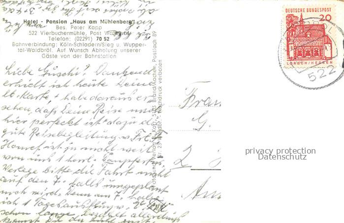 74090164 Vierbuchermuehle Waldbroel NRW Hotel Pension Haus am Muehlenberg Waldsee postalisch nicht gelaufen Erhaltung siehe scans [WerneD78] KatCode: 11110005374044