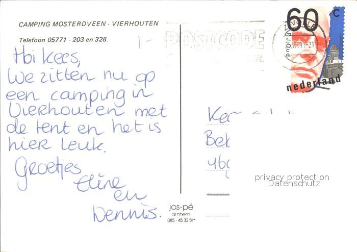 old postcard Vierhouten Camping Mosterdveen Bar Gastraum Badesee postalisch gelaufen Erhaltung siehe scans