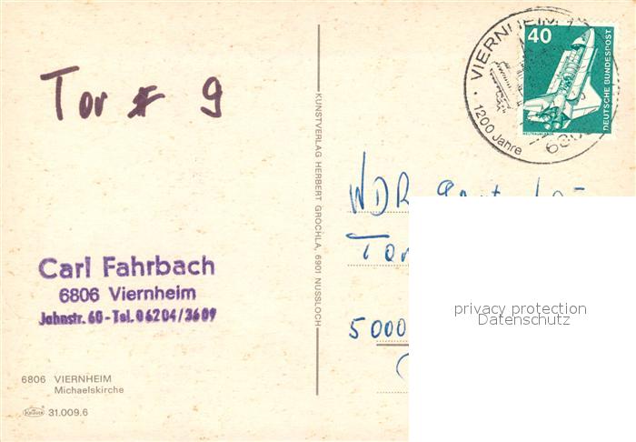 73258266 alte Postkarte Viernheim Michaelskirche postalisch gelaufen Erhaltung siehe scans [WerneD78] KatCode: 11110006431020