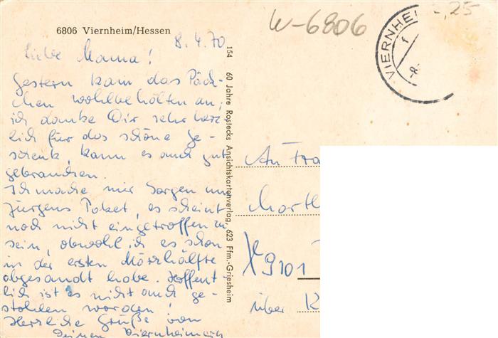 73896633 alte Postkarte Viernheim Pestalozzisstrasse Friedrich Froebel Schule Waldschwimmbad Apostelkirche postalisch gelaufen Erhaltung siehe scans [WerneD78] KatCode: 11110006431020