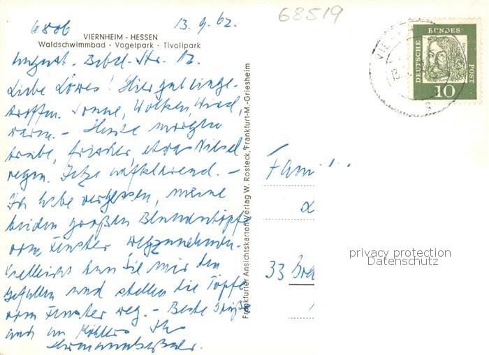 73854370 alte Postkarte Viernheim Waldschwimmbad Vogelpark Tivolipark postalisch gelaufen Erhaltung siehe scans [FriedD77] KatCode: 11110006431020