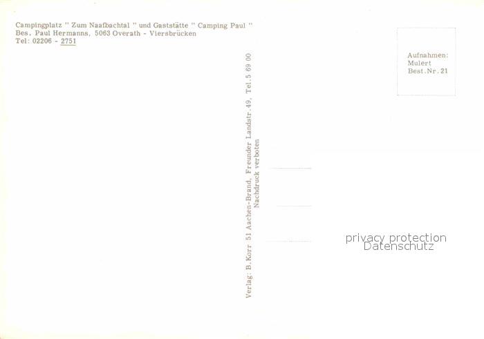 72902943 Viersbruecken Campingplatz Zum Naafbachtal Gaststaette Camping Paul postalisch nicht gelaufen Erhaltung siehe scans [FriedD77] KatCode: 11110005378024
