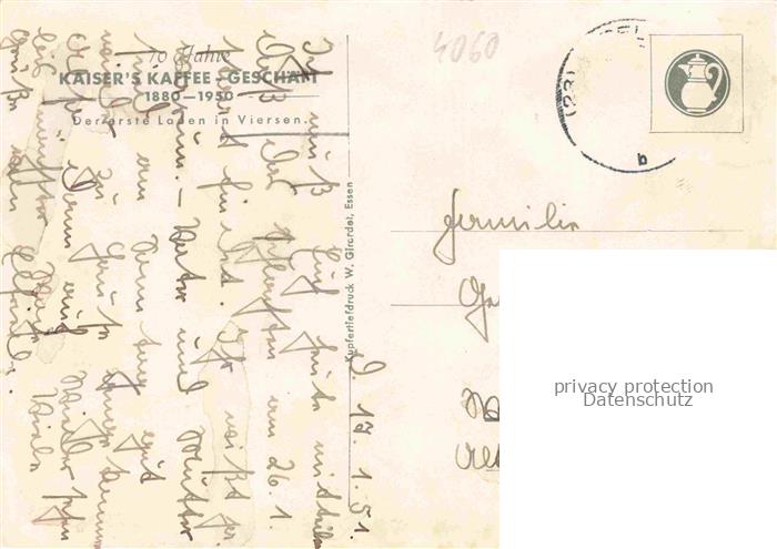 74017187 alte Postkarte VIERSEN Kaisers Kaffee Geschaeft postalisch gelaufen Erhaltung siehe scans [WerneD78] KatCode: 11110005166032