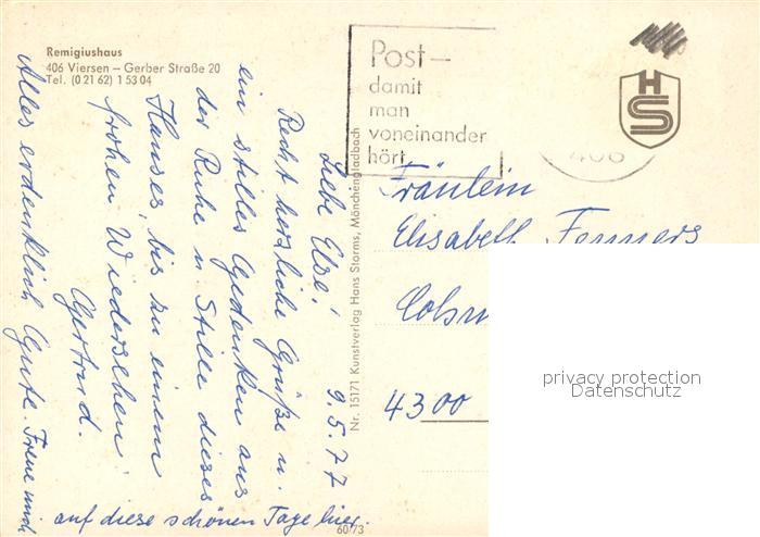 73088382 alte Postkarte Viersen Remigiushaus postalisch gelaufen Erhaltung siehe scans [PaolaD17] KatCode: 11110005166032