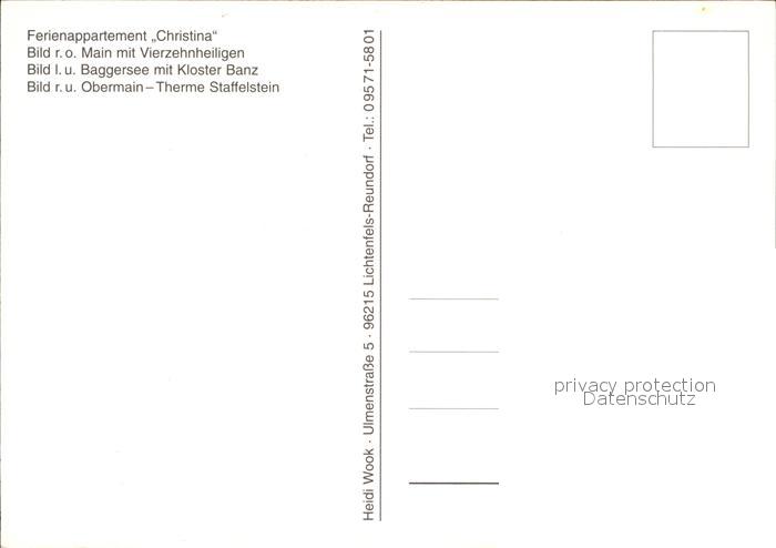 Vierzehnheiligen Appartement Christina Kloster Banz Obermain Therme Staffelstein postalisch nicht gelaufen Erhaltung siehe scans