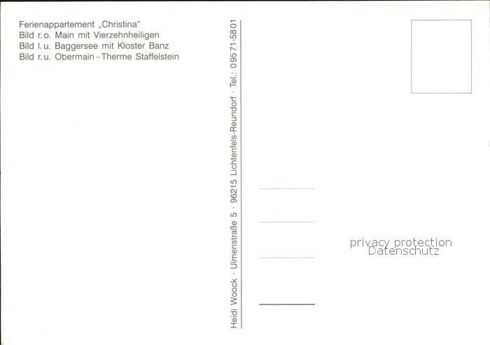 Vierzehnheiligen Appartement Christina Kloster Banz Obermain Therme Staffelstein postalisch nicht gelaufen Erhaltung siehe scans