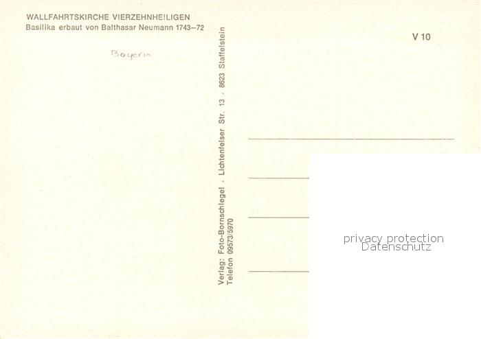 73241061 Vierzehnheiligen Basilika postalisch nicht gelaufen Erhaltung siehe scans [KathaD81] KatCode: 11110009478165