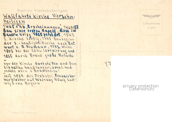 73208818 Vierzehnheiligen Basilika Fliegeraufnahme postalisch nicht gelaufen Erhaltung siehe scans [FriedD77] KatCode: 11110009478165