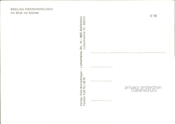 72419559 Vierzehnheiligen Basilika mit Blick ins Maintal Fliegeaufnahme postalisch nicht gelaufen Erhaltung siehe scans KatCode: 11110009478165