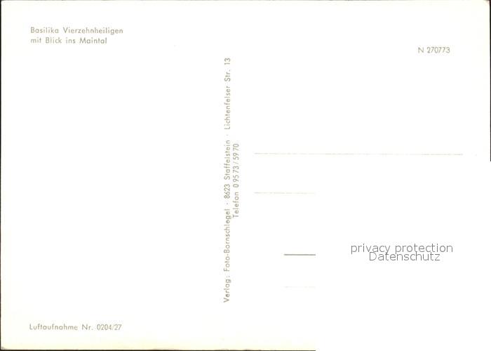 72048173 Vierzehnheiligen Fliegeraufnahme Basilika Maintal postalisch nicht gelaufen Erhaltung siehe scans KatCode: 11110009478165