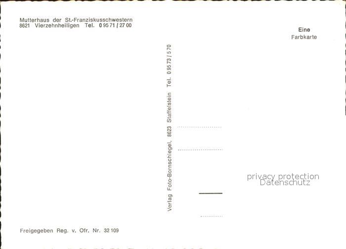 72548988 Vierzehnheiligen Fliegeraufnahme Mutterhaus der St. Franziskusschwestern postalisch nicht gelaufen Erhaltung siehe scans [LiesaD40 kv021box] KatCode: 11110009478165