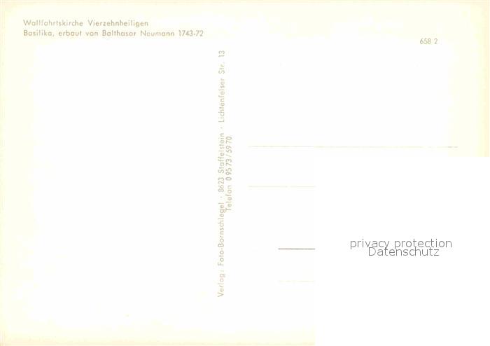 72721065 Vierzehnheiligen Wallfahrtskirche Basilika Erbauer Balthasar Neumann 18. Jhdt. Innenansicht postalisch nicht gelaufen Erhaltung siehe scans [FriedD77] KatCode: 11110009478165