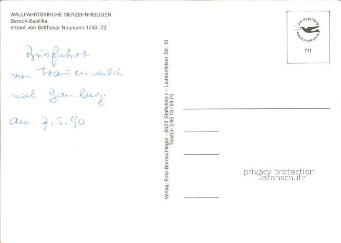 72323747 Vierzehnheiligen Wallfahrtskirche Basilika postalisch nicht gelaufen Erhaltung siehe scans KatCode: 11110009478165