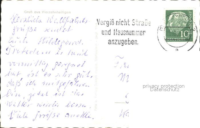 72445651 alte Postkarte Vierzehnheiligen Wallfahrtskirche Briefschwalbe postalisch gelaufen Erhaltung siehe scans KatCode: 11110009478165