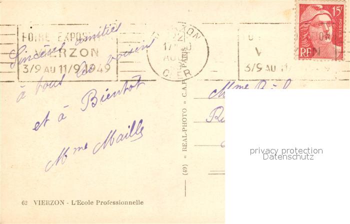13561647 carte postale Vierzon Ecole Nationale Professionnelle postalisch gelaufen Erhaltung siehe scans [WerneD78] KatCode: 11170018318279