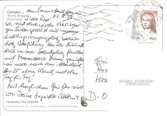 old postcard Vieste Foggia Ortsansicht postalisch gelaufen Erhaltung siehe scans