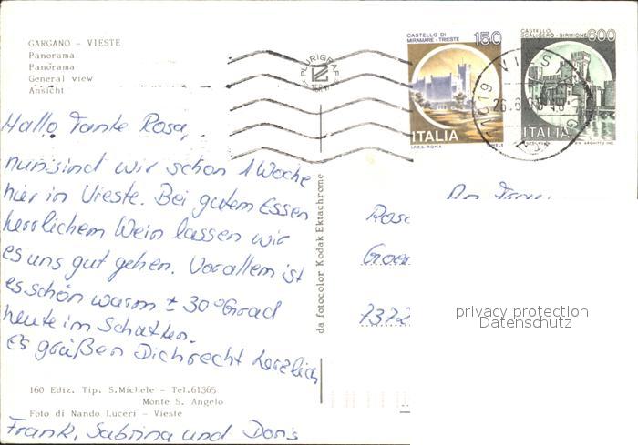 old postcard Vieste Foggia Ortsansicht postalisch gelaufen Erhaltung siehe scans