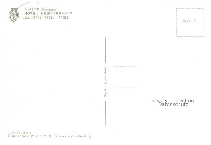 74136760 Vieste Foggia Puglia IT Hotel Mediterraneo Swimming Pool postalisch nicht gelaufen Erhaltung siehe scans [FriedD77] KatCode: 11240
