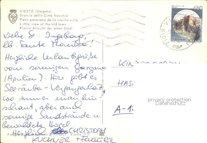 old postcard Vieste Foggia Scorcio della Citta Vecchia postalisch gelaufen Erhaltung siehe scans