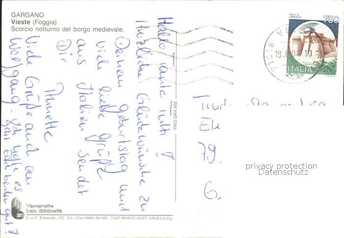 old postcard Vieste Foggia Scorcio notturno del borgo medievale postalisch gelaufen Erhaltung siehe scans