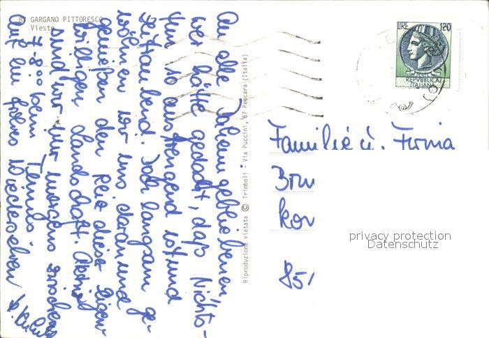 old postcard Vieste Foggia Stadtansicht postalisch gelaufen Erhaltung siehe scans