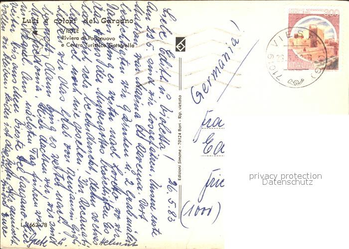 old postcard Vieste Foggia Strand postalisch gelaufen Erhaltung siehe scans