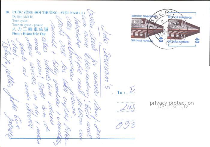 old postcard Vietnam Rikschas postalisch gelaufen Erhaltung siehe scans