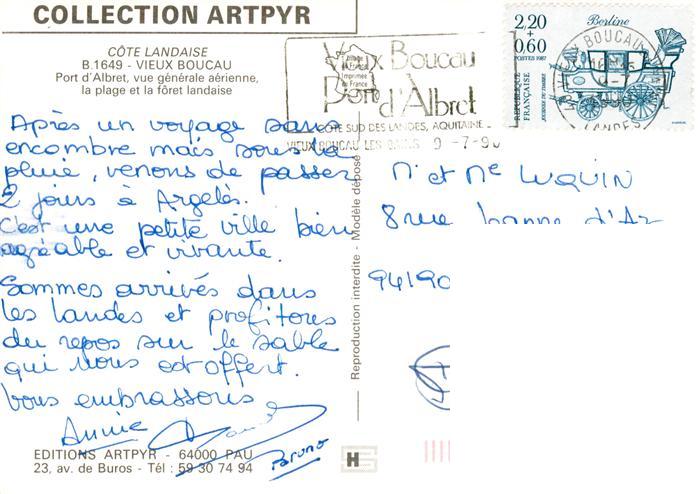13945153 Vieux-Boucau-les-Bains 40 Landes Port d’Albret la plage et la fôret landaise vue aérienne postalisch gelaufen Fliegeraufnahme Erhaltung siehe scans [FriedD77] Fliegeraufnahme carte postale Frie Katcode 11170040140328