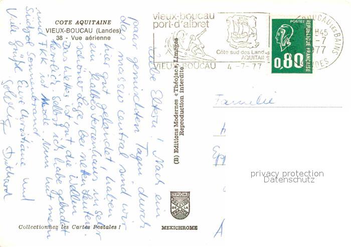 12840171 carte postale Vieux-Boucau-les-Bains Fliegeraufnahme postalisch gelaufen Erhaltung siehe scans [WerneD78] KatCode: 11170040140328