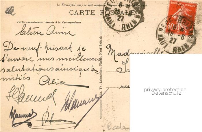 43510812 alte Postkarte Vieux Brisach Rheinufer Schiffsbruecke Blick zum Muenster postalisch gelaufen Erhaltung siehe scans [FriedD77] KatCode: 11110008315015