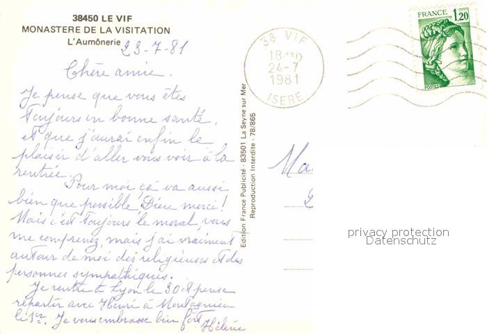 12890328 carte postale Vif L’Aumonerie postalisch gelaufen Erhaltung siehe scans [AndreD76] KatCode: 11170038138545