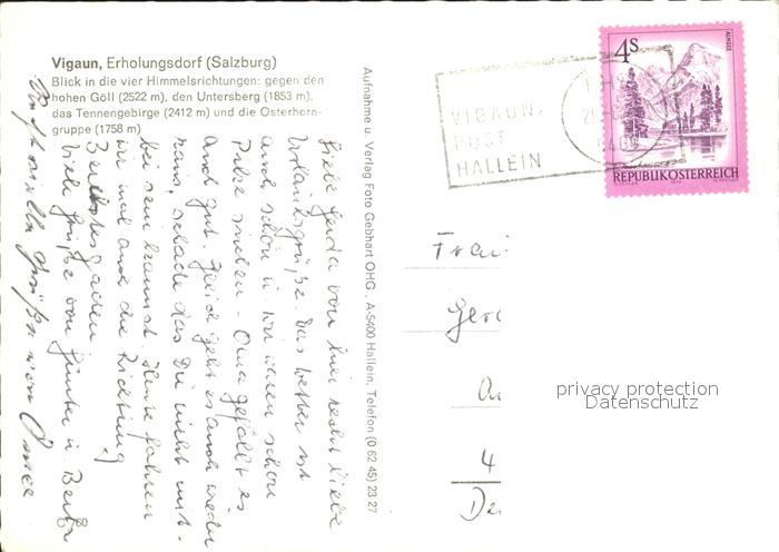 72131931 alte Postkarte Vigaun Bad Hohe Goell Untersberg Tennengebirge Osterhorn postalisch gelaufen Erhaltung siehe scans KatCode: 11390323050213