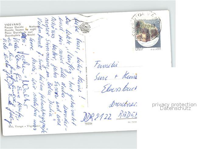 old postcard Vigevano Piazza Ducale notturno Ducaleplatz postalisch gelaufen Erhaltung siehe scans