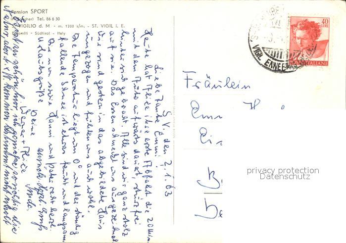 old postcard Vigilio Trento Pension Sport postalisch gelaufen Erhaltung siehe scans