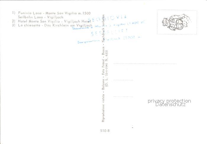 Vigiljoch Funivia Lana Hotel Monte San Vigilio La chiesetta postalisch nicht gelaufen Erhaltung siehe scans