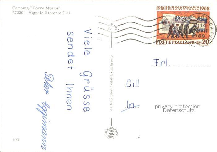 old postcard Vignale Riotorto (Li) Torre Mozza Camping postalisch gelaufen Erhaltung siehe scans